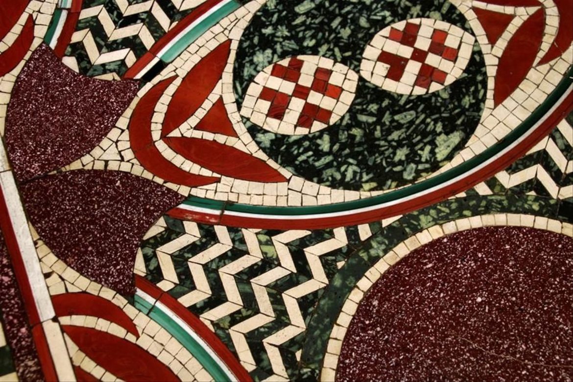The story of this mosaic seemed dead until Dario Del Bufalo‘s 2013 presentation in New York of a book on the use of red porphyry in imperial art. In this book, he showed a photograph of the missing mosaic which one of the attendees recognised as Helen Costantino Fioratti, president of L’Antiquaire and the Connoisseur’s coffee table.